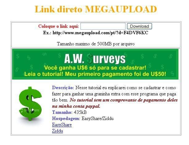 apoés aparecer a pagina coloque o link do megaupload e click em download...